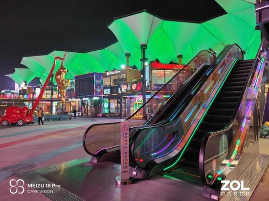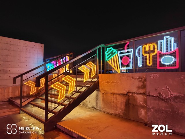 夜景/暗光拍摄方面,得益于弱光下自动开启的DarkVision夜景算法以及魅族 18 Pro拥有的1/1.3英寸大底主摄及三星GN1所支持的Tectracell像素合成技术,其在夜景拍摄条件下样张细节丰富且拥有较大的动态范围,做到“亮处不过曝,暗处细节足”,对曝光及噪点的控制能力较强,即使在亮度提升的条件下色彩呈现依旧准确。