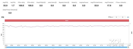 得益于魅族 18 Pro采用的120Hz高刷新率屏幕、超大面积VC液冷及One Mind 5.0,其整体游戏体验令人满意。从图表也不难看出,魅族 18 Pro在以高帧率模式运行《和平精英》和《王者荣耀》这两款主流手游时帧率稳定,平均帧率分别为59.7/59.9 ,实际游玩时运行流畅无卡顿出现。同时在运行《原神》等较吃配置的手游时仍能从容应对,即使在全高画质下仍能较流畅运行,平均帧率为55.9。