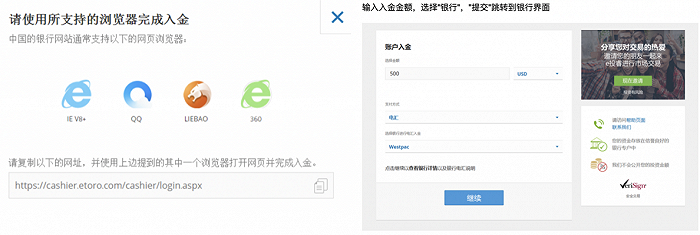 Forex-contest网站介绍,eToro用户出入金的方式为“电汇”,用户通过银行发送电汇,再将银行转账用的SWIFT文件上传到etoro平台。有公告显示,自2020年8月,e投睿表示因运营原因,不再支持中国银联作为入金支付渠道。事件曾引发讨论。