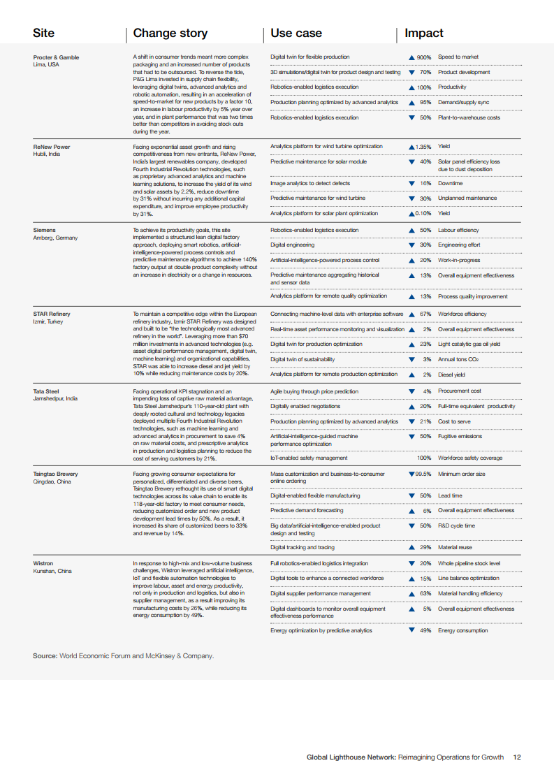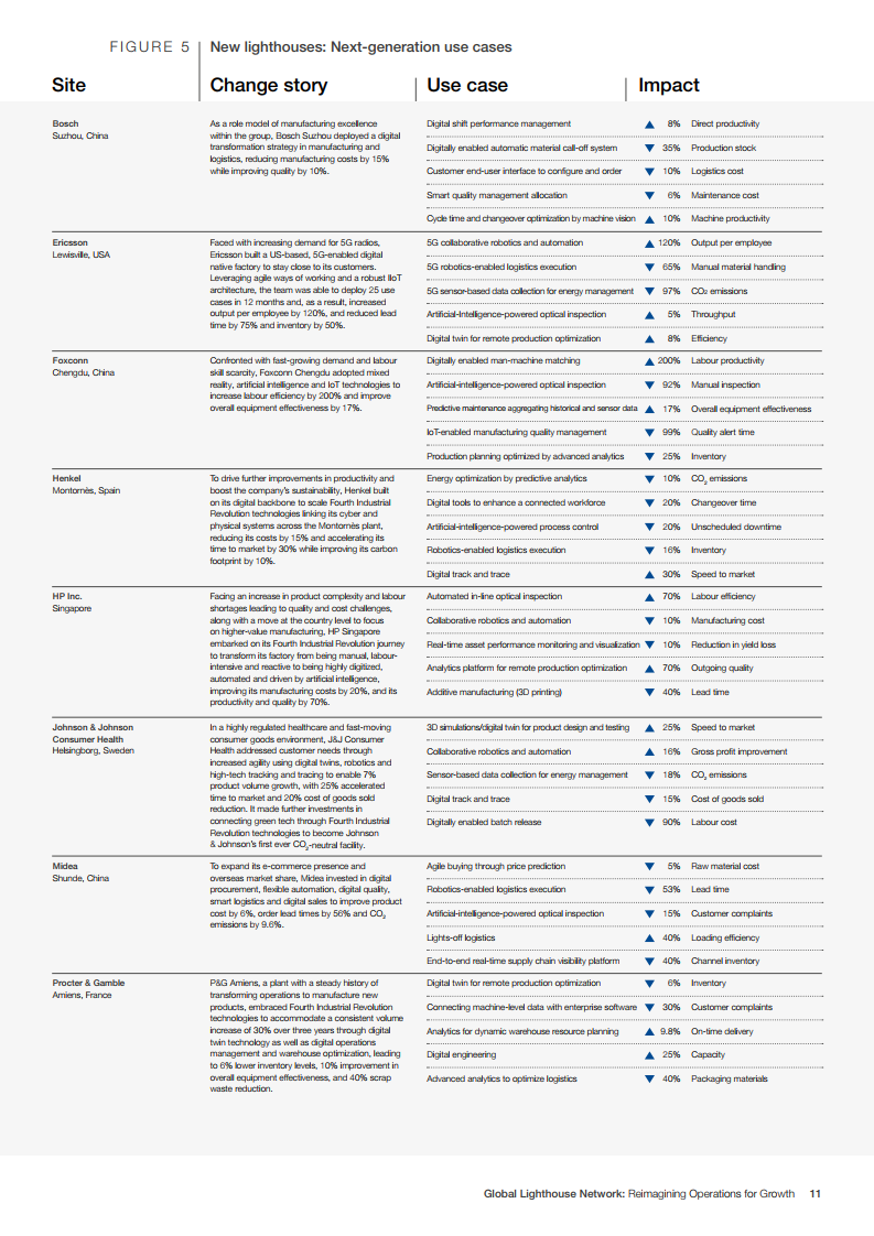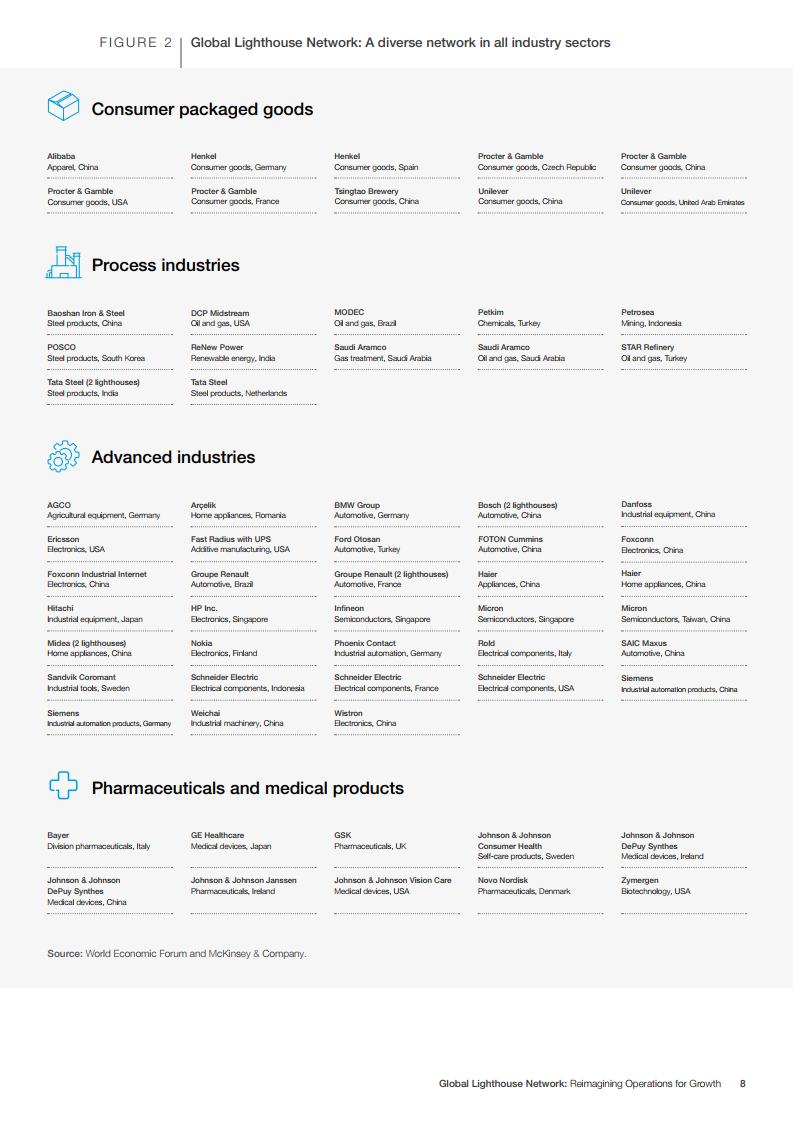 全球灯塔网络及其69家工厂企业构成了一个致力于开发、复制和推广创新方案的平台,创造了可进行跨企业学习和协作的机会,为全球制造业树立了全新的标杆。