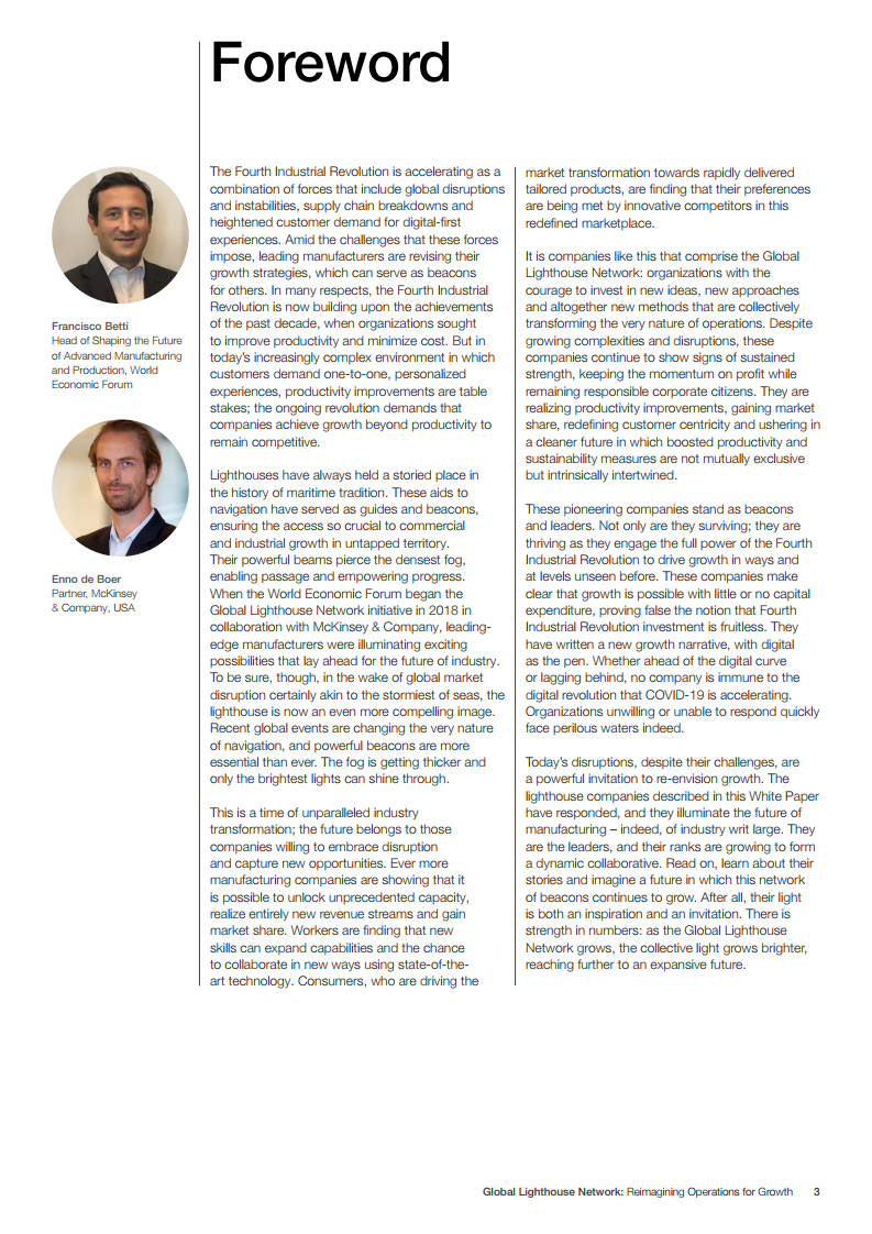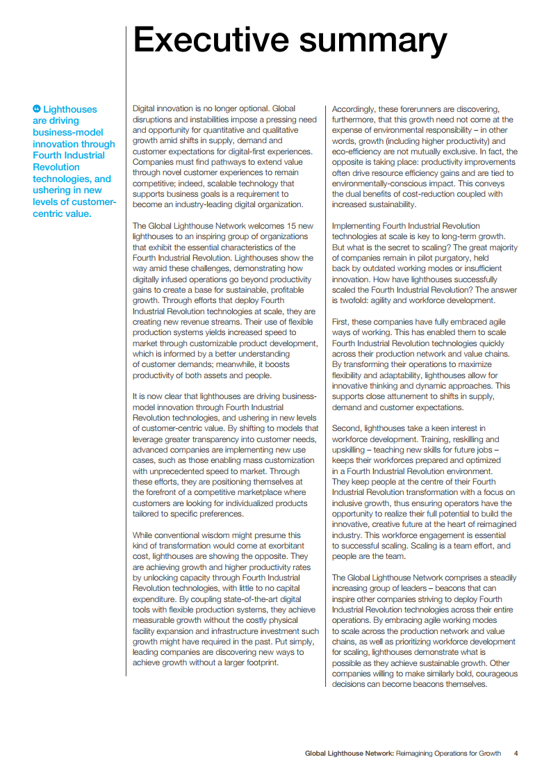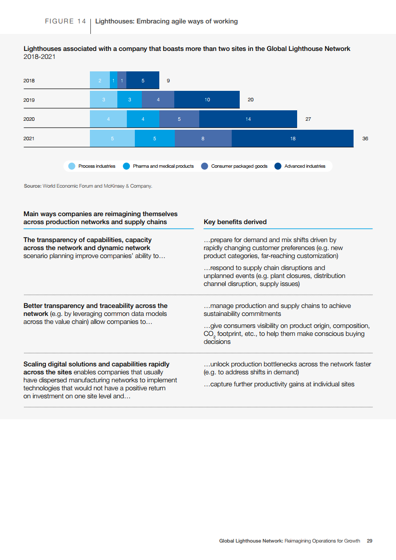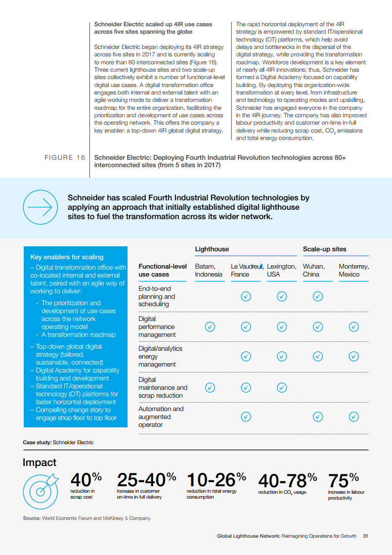 全球灯塔网络及其69家工厂企业构成了一个致力于开发、复制和推广创新方案的平台,创造了可进行跨企业学习和协作的机会,为全球制造业树立了全新的标杆。