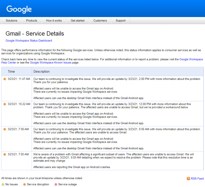 最后,谷歌在 Google Workspace 状态页面上确认了 Android 版 Gmail 邮件客户端存在的同样问题。在问题正式解决之前,该公司建议先使用桌面 Web 版本。
