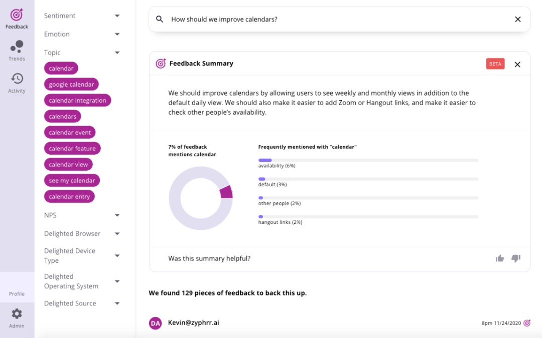 Viable 通过使用 GPT-3 来帮助行业内公司更好地了解他们的客户,并以易于理解的摘要形式从客户反馈中提供有用的信息。使用 GPT-3,Viable 可从客户调查、客服、实时聊天记录、评论等中识别主题、情感、情绪等。然后再从汇总反馈中提取见解,并在几秒钟之内提供摘要。例如: