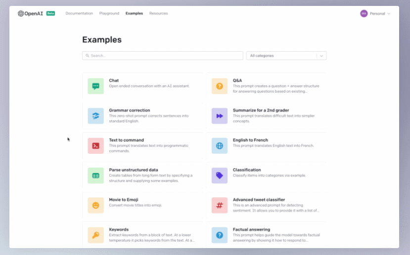 回答端点(answer endpoint):在利用 GPT-3 进行文本补全之前,为添加至提示的相关上下文搜索已有信息,如文档和知识库等。可用于与机器人有关的应用,并且无需微调;