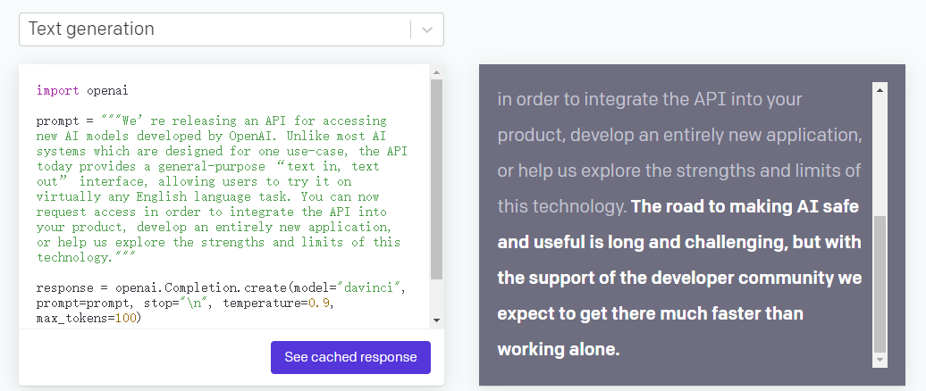 在具体实现上,用户输入短语或句子等文本提示,GPT-3 会返回可以看懂的自然语言文本补全。开发者通过向 GPT-3 展示少数示例或提示,即可对它进行「编程」。该 API 的简单易用性也使得机器学习团队实现了更高的生产效率。