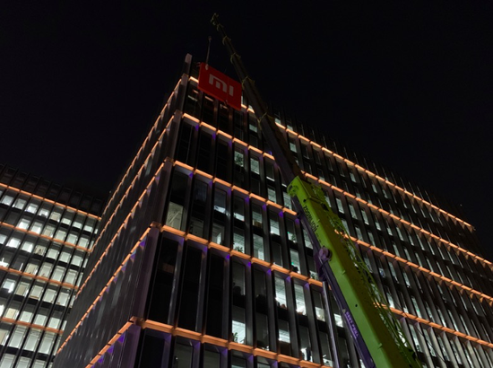 小米正式官宣造车的这天,一辆长臂吊车正在小米科技园的楼下作业。它要摘掉原来的招牌,换一个新LOGO,设计特地请了日本知名设计师原研哉。