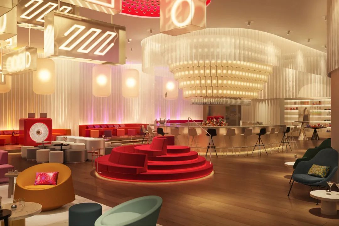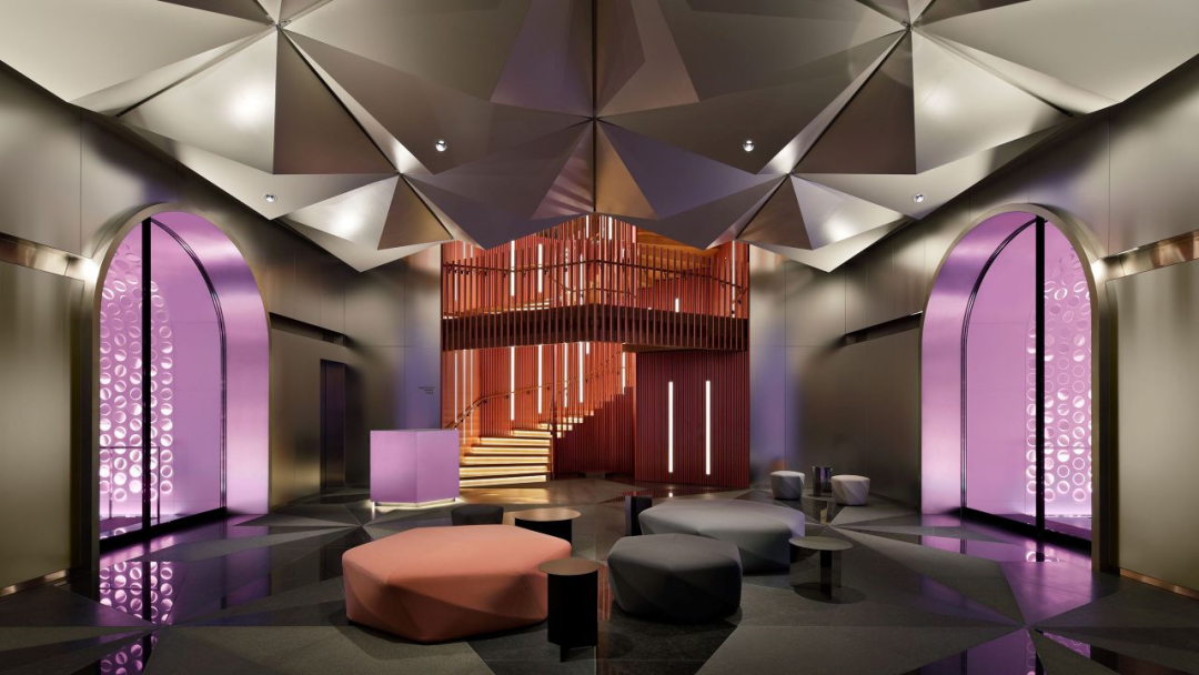 大阪 W 的室内设计部分由阿姆斯特丹的 Concrete 工作室负责。该工作室曾设计打造出新颖别致的伦敦 W 酒店和韦尔比耶 W 酒店。设计师从大阪繁华的都市生活中提取灵感,将霓虹闪烁的夜晚氛围带入到酒店的设计中。