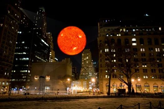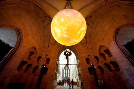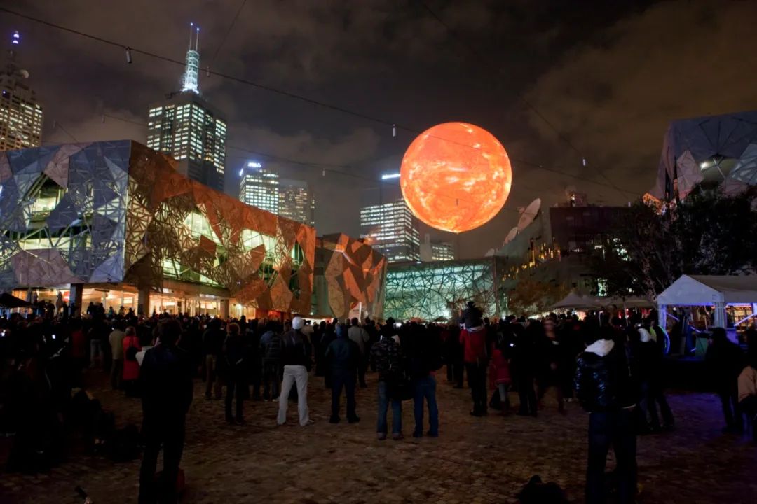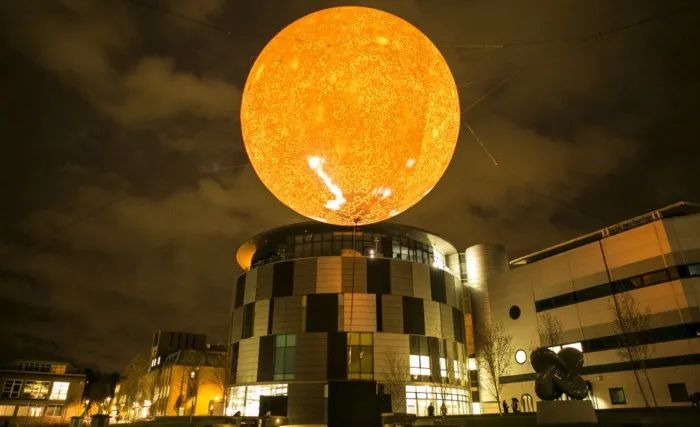 《太阳方程式》(Solar Equation)是Rafael Lozano-Hemme 实施的一个大型公共艺术装置,它忠实地模拟了太阳的表面,是太阳的1亿分之一。该作品最初受墨尔本冬季之光节委托制作,并在墨尔本的联邦广场上展出。球体模拟了太阳表面可见的湍流、耀斑和斑点,并通过流体动力学方程式以及来自美国NASA的太阳动力学观测台(SDO)和日球天文台(SOHO)的最新图像绘制而成。这是一个不断变化的现象,让观众可以一瞥太阳表面观测到的雄伟现象。