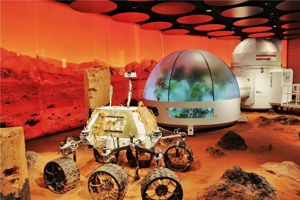 北京SKP-S 未来主义的建筑外观和室内是与英国建筑事务所 Sybarite 联合打造。以“数字模拟未来”为主题,SKP-S将“人类移居火星”的情节脉络贯穿其中。从一层的“未来农场”,二层的“火星博物馆”,到三层的太空舱与火星基地,人工智能、克隆技术、火星探测模拟环境、虫洞、模拟机器人……SKP-S为观者呈现了一次非同寻常的沉浸式“火星”之旅。