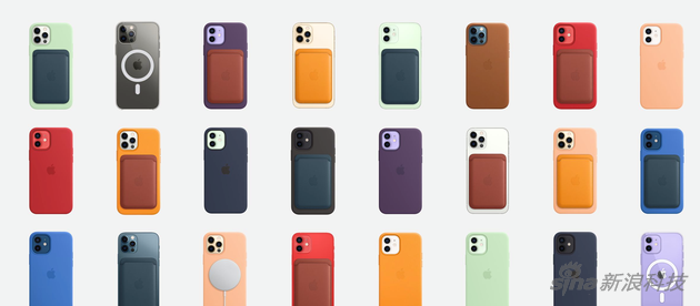iPhone也更新多款保护壳。硅胶保护壳配和紫色iPhone 12上线紫水晶色,此外还有地中海蓝、蜜瓜色、开心果色;MagSafe 皮革卡包推出丹霞色。