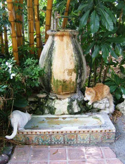 这个巨大的猫碗实际上是一个老旧的小便池,是从海明威最爱去的“邋遢乔”酒吧拿的。据传他的妻子很讨厌这个回收利用的猫碗,于是用一个旧西班牙罐子“装饰”了一番,并往一侧倾斜。如今,这里的猫咪仍旧用它喝水。