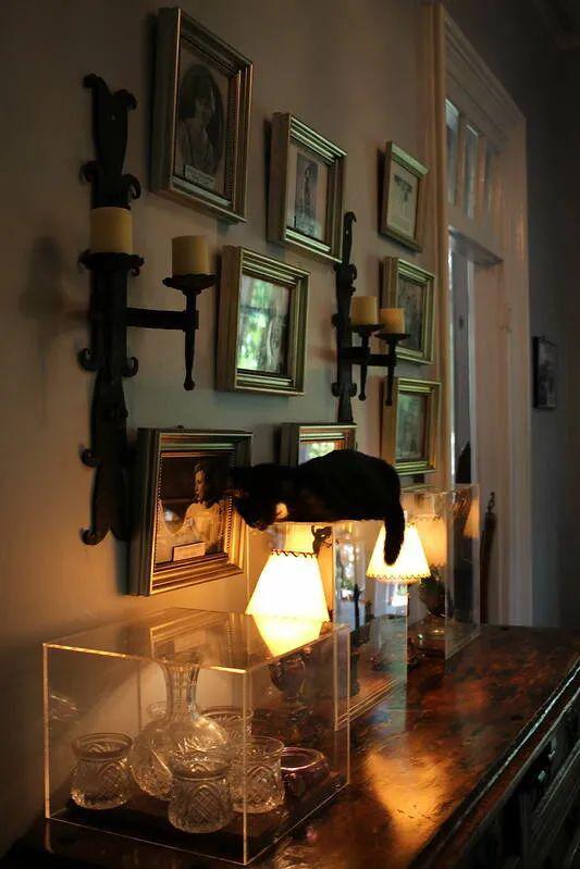 海明威的故居中有很多和猫相关的物品。如蕾丝窗帘上的图案就是猫的形状。不过最古怪的物品之一是作家亲自安装的猫咪饮水喷泉。