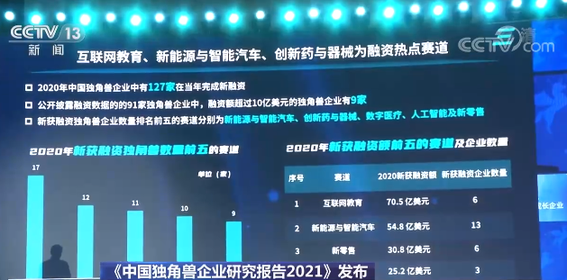在2020年127家新获融资的独角兽企业中,互联网教育、新能源与智能汽车、创新药与器械、网红爆品等行业成为融资热点。