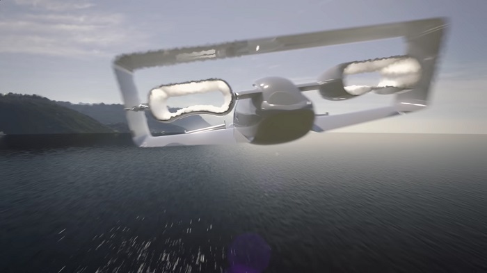 渲染图表明,在达到巡航高度时,J-2000 能够收回两个前推进器,以减少阻力和不必要的额外升力。