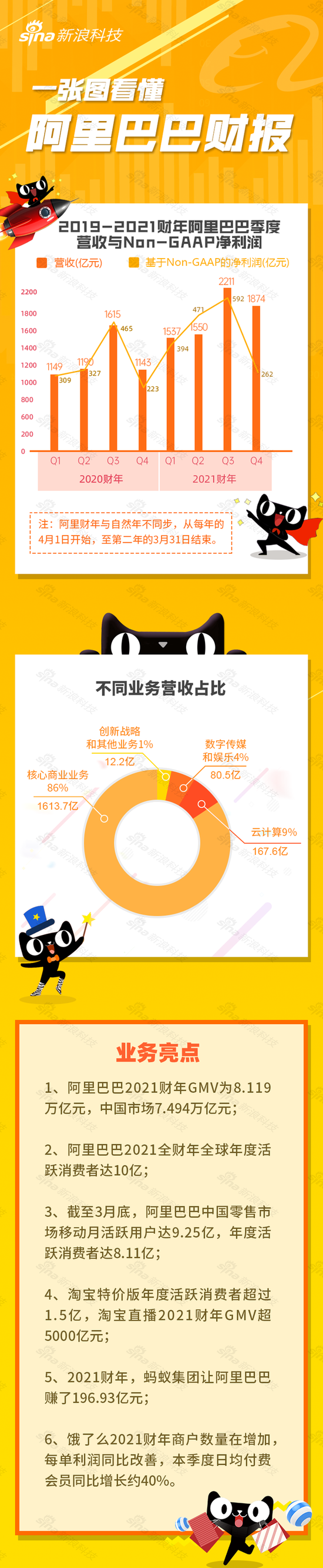 一图看懂阿里2021财年Q4财报:营收1874亿元 同比增长64%