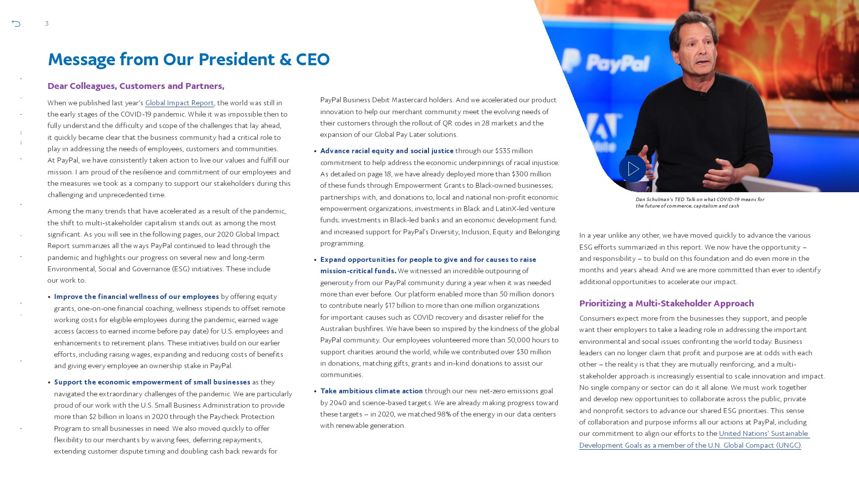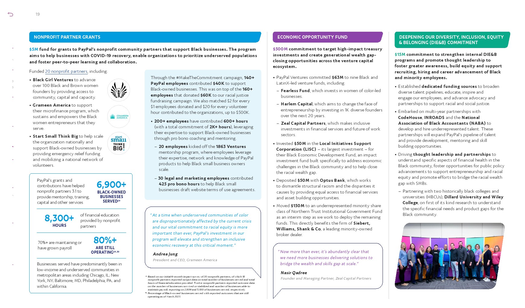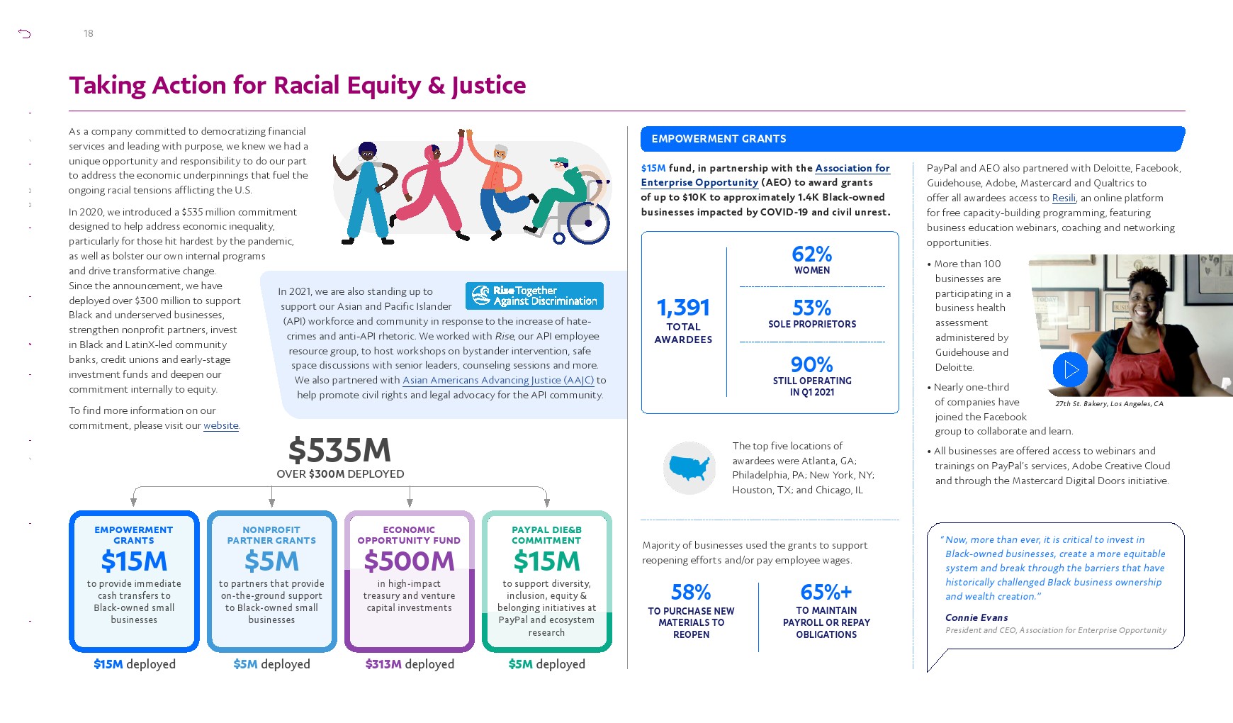 部署了超过3亿美元帮助解决经济不平等问题,并加强内部计划以推动社会变革。