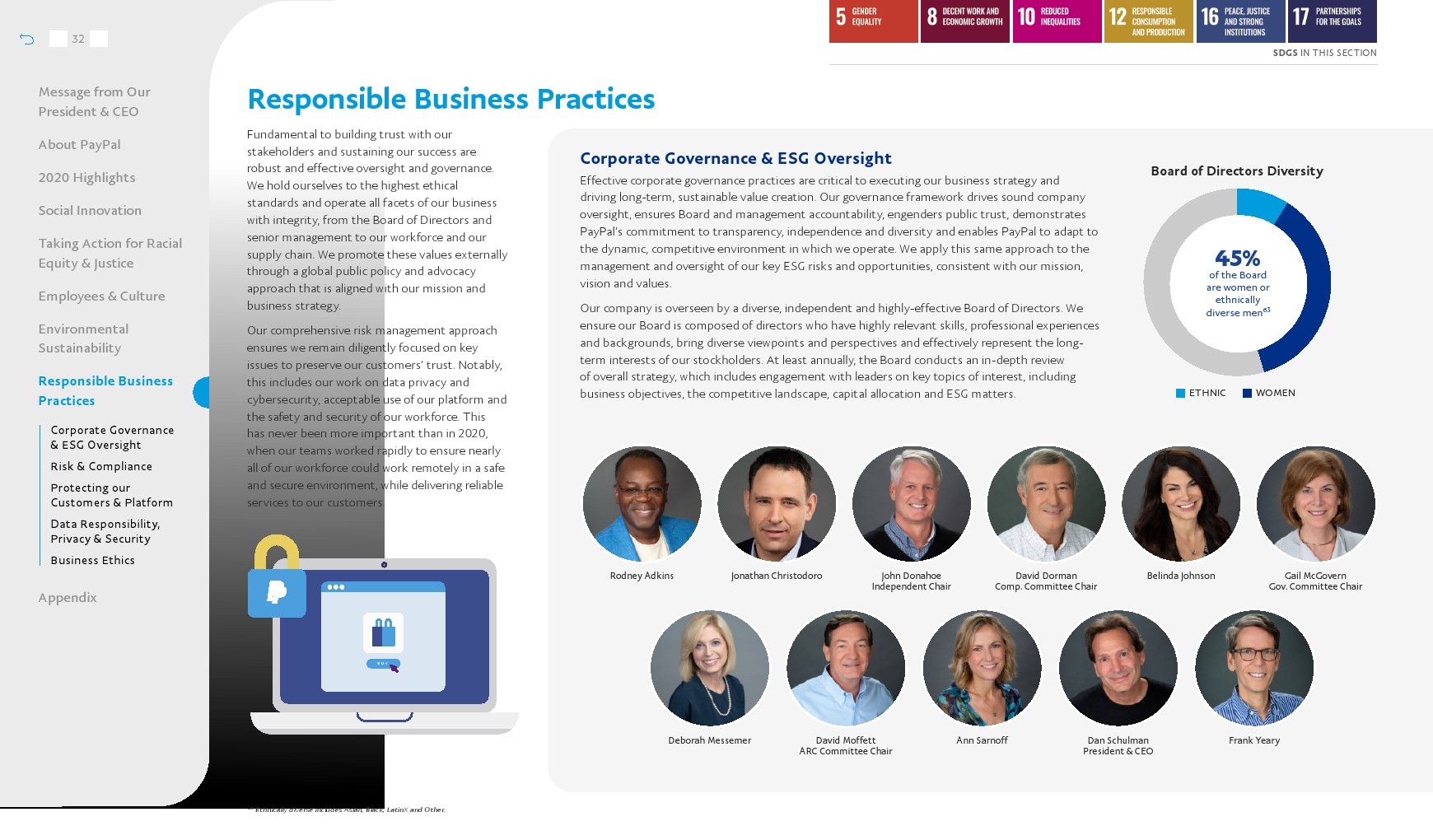 56%的多元化员工代表,包括43%的女性和52%的多种族员工。董事会中有45%的女性或来自不同种族的群体。
