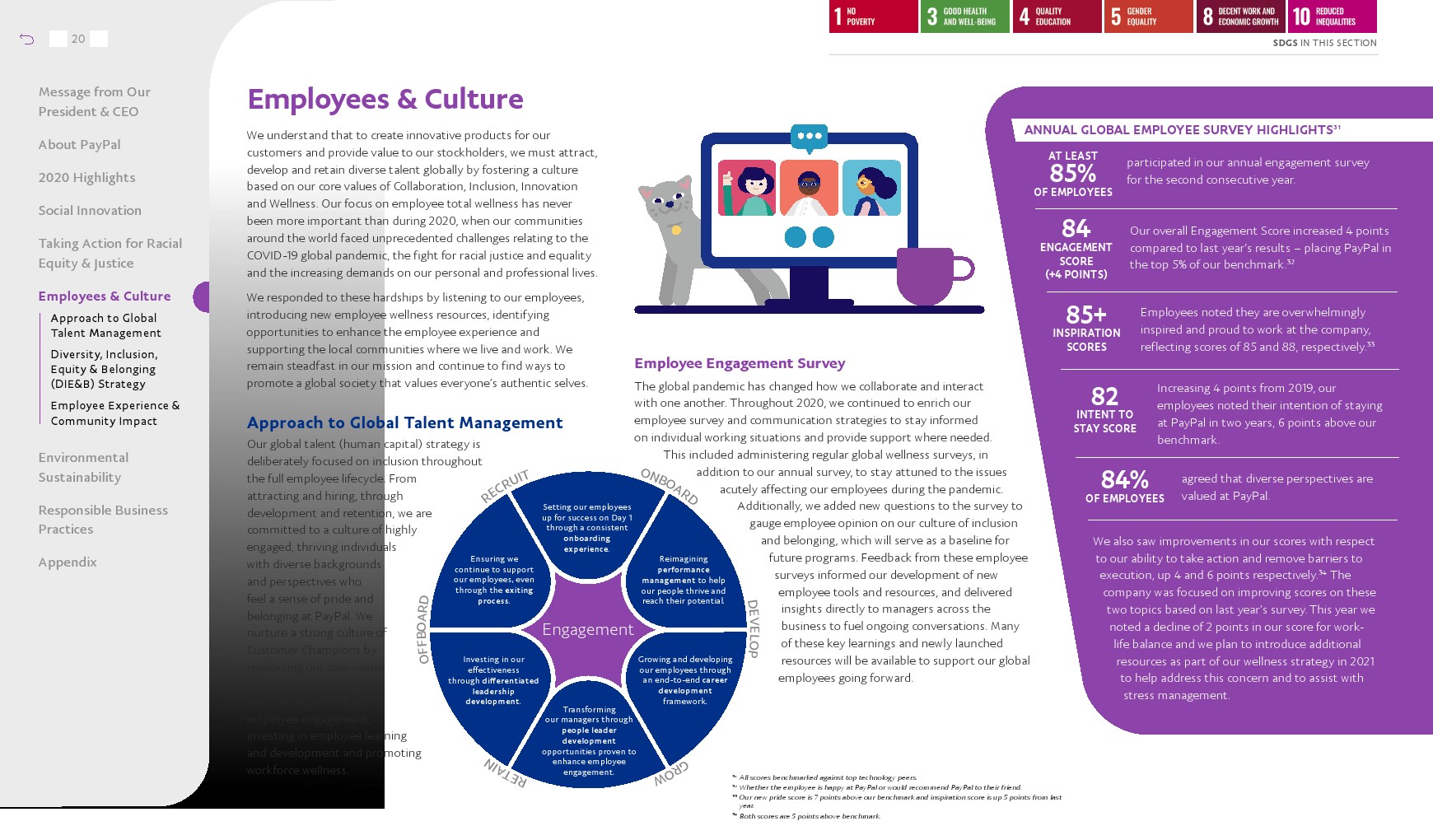 将员工的整体敬业度得分提高到84,比去年上升了4分。