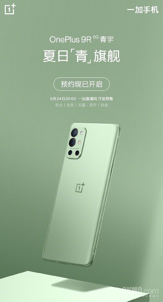手机中国了解到,一加9R青宇配色现在已经开启预约,将在5月24日20:00于一加直播间开启预售,平台包括欢太商城和京东商城等,感兴趣的小伙伴可以多多关注。