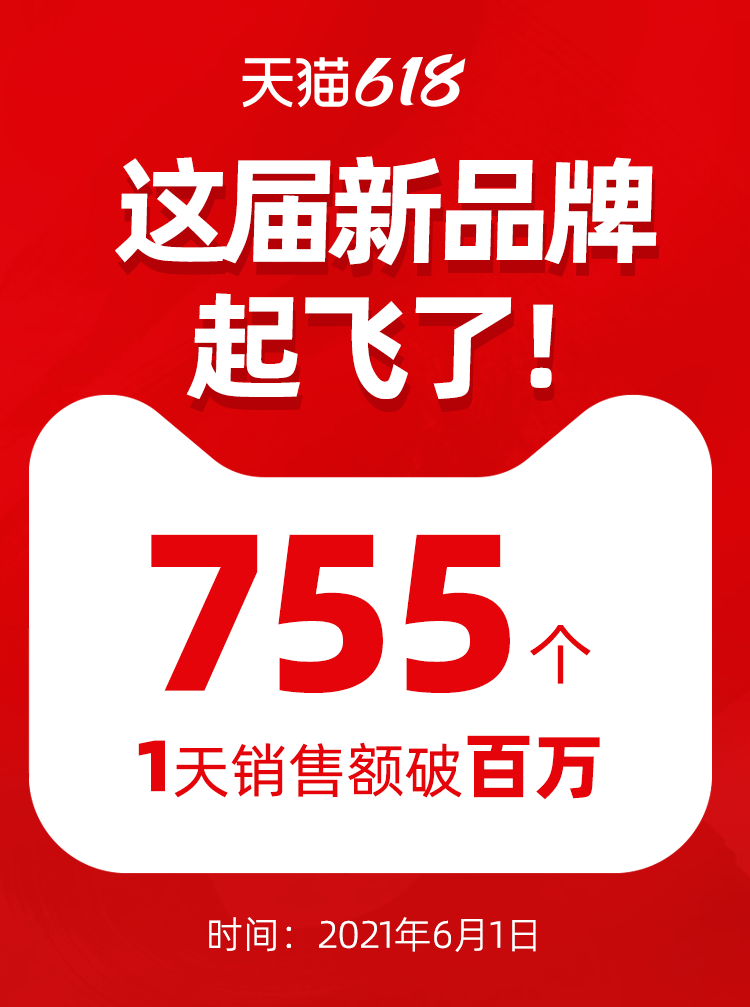 2021年天猫618开门红期间,仅6月1日当天,就有755个新品牌首日成交额超过1百万元。有商家慨叹:新品牌的黄金时代来了,天猫是品牌创业第一平台。