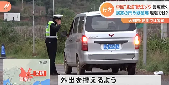 据富士电视台5日报道,镜头中的执勤警察对当地司机先敬礼后询问,当检查到记者所乘车辆时,执勤警察也面带微笑地向司机解释着暂时无法通行的状况,还亲切地问道“你们是来看大象的吧?”。