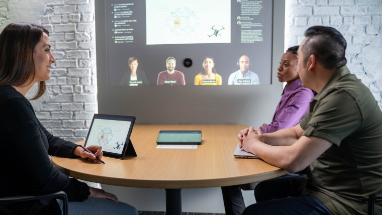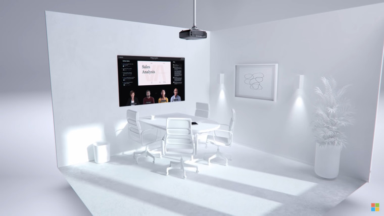 有趣的是,邀请页面中出现了一张概念图,展示了微软认为未来会议室的样子。