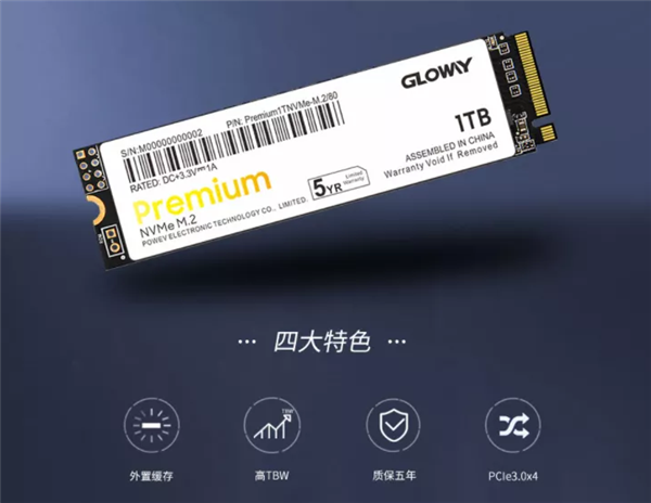 日前嘉合劲威旗下的光威品牌推出了一款高性能 NVMe 硬盘 Premium 系列,使用的是国产主控及国产 TLC 闪存,不仅速度可达 3.3GB/s,TBW 寿命也要比其他产品高出 50%。光威 Premium 系列硬盘采用联芸 1001 主控,长江存储 3D TLC NAND 闪存,带独立缓存,支持 NVMe1.3 协议 ,PCIe3.0X4 通道。