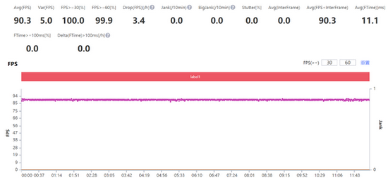 经过测试,华为Mate Pad 11的性能还是很给力的,不仅支持了《王者荣耀》最新的90帧模式,而且在帧率表现上达到了一个非常优秀的水平。在特效拉满的情况下,平均帧率90.3帧,整个游戏体验丝滑流畅,并且游戏中也没有出现发热的情况。