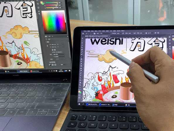 假如你是一个学设计或者喜欢画画的同学,相信华为Mate Pad 11会是你很好的助手。比如我们在笔记本电脑上处理PS文件时,在镜像模式下画面就会同步到华为Mate Pad 11上,此时利用平板电脑的触控特性,再加上新一代的华为M-Pencil触控笔,在平板上抠图、描边、涂色等操作就会得心应手。此时的华为Mate Pad 11就瞬间变成了你手中的数位板,这是一个非常方便好用的功能,绝对是一个超赞的体验。