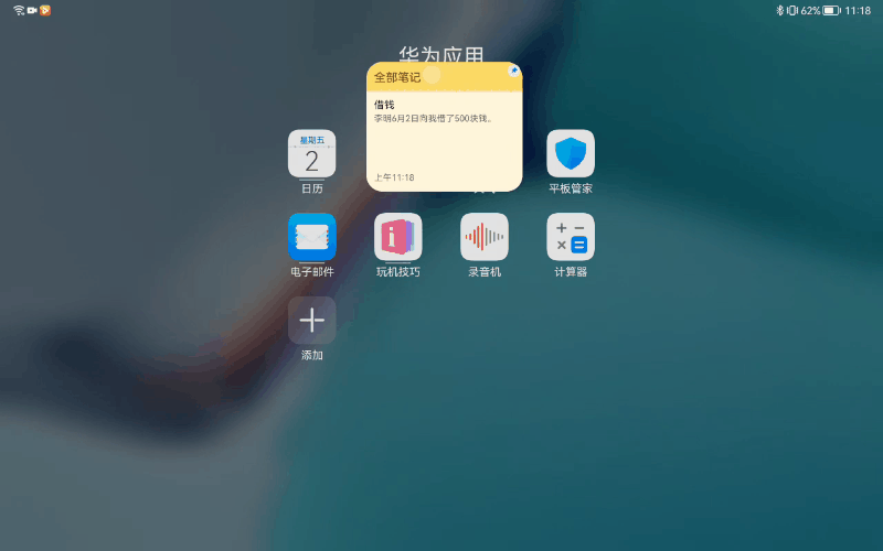 还可以点击右上角的图钉,把卡片放置在桌面,方便信息查看。充分发挥平板的大尺寸优势的同时,还能打造个人专属桌面,不仅实用,而且美观。