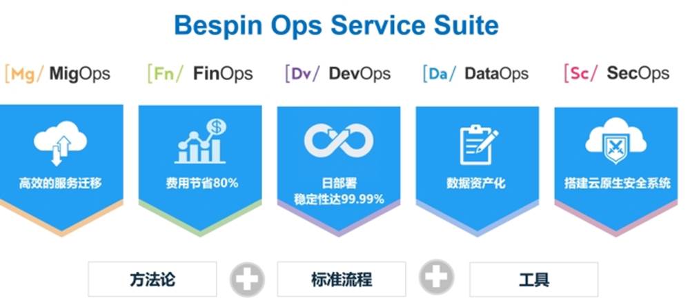 进入Cloud IT的新时代,Bespin Global正在致力打造端到端的Cloud IT Transformation解决方案,以帮助企业在各种不同云环境下实现开发运维一体化,将传统应用快速转型到云环境,帮助企业在云上实现最大的成本控制及优化,构建云端数据智能和AI服务能力,保障云原生架构下的合规性和信息安全,帮助企业真正用好云。Bespin Global正式推出X-Ops战略,并打造出MigOps、FinOps、DevOps、DataOps和SecOps解决方案,为用户提供更加全面的数字化转型服务。