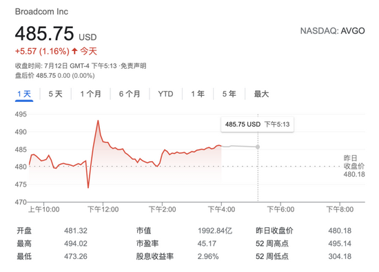 博通股价周一上涨近1.2%,收于485.75美元。该股今年累计上涨11%,落后于费城证券交易所半导体指数19%的涨幅。