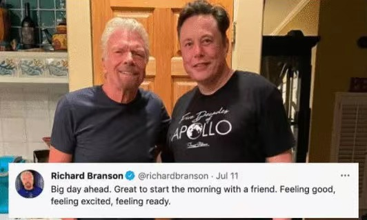 布兰森成了这场“太空竞赛”中的“抢跑者”。他不仅蹭了贝索斯的热度,还拉来马斯克一起“带流量”,在社交网站晒出自己出发前一天和马斯克的合照。从BBC称其太空之旅是“人类太空旅行的转折点”来看,布兰森的“抢跑”还是很有意义的。
