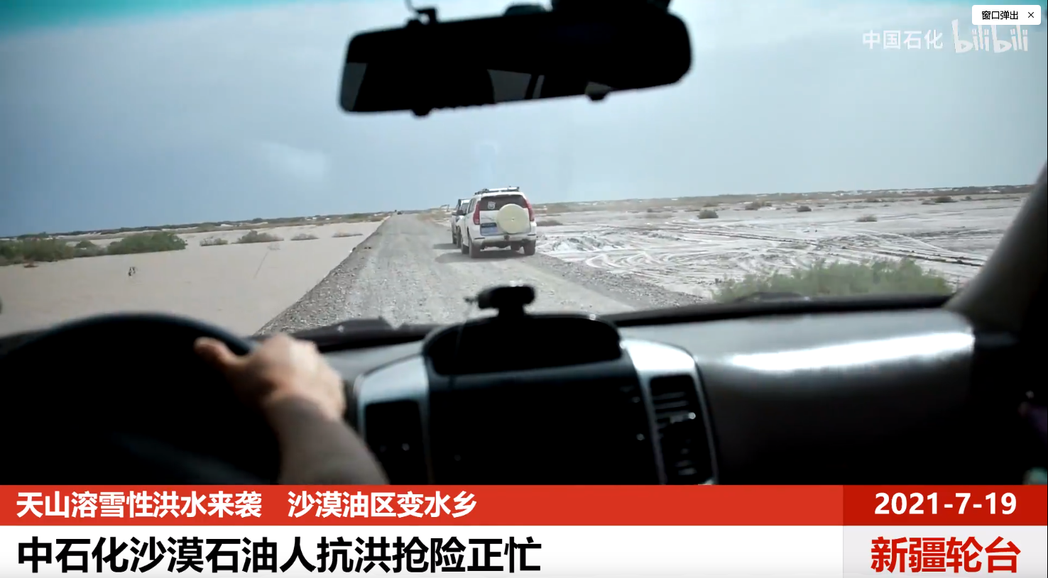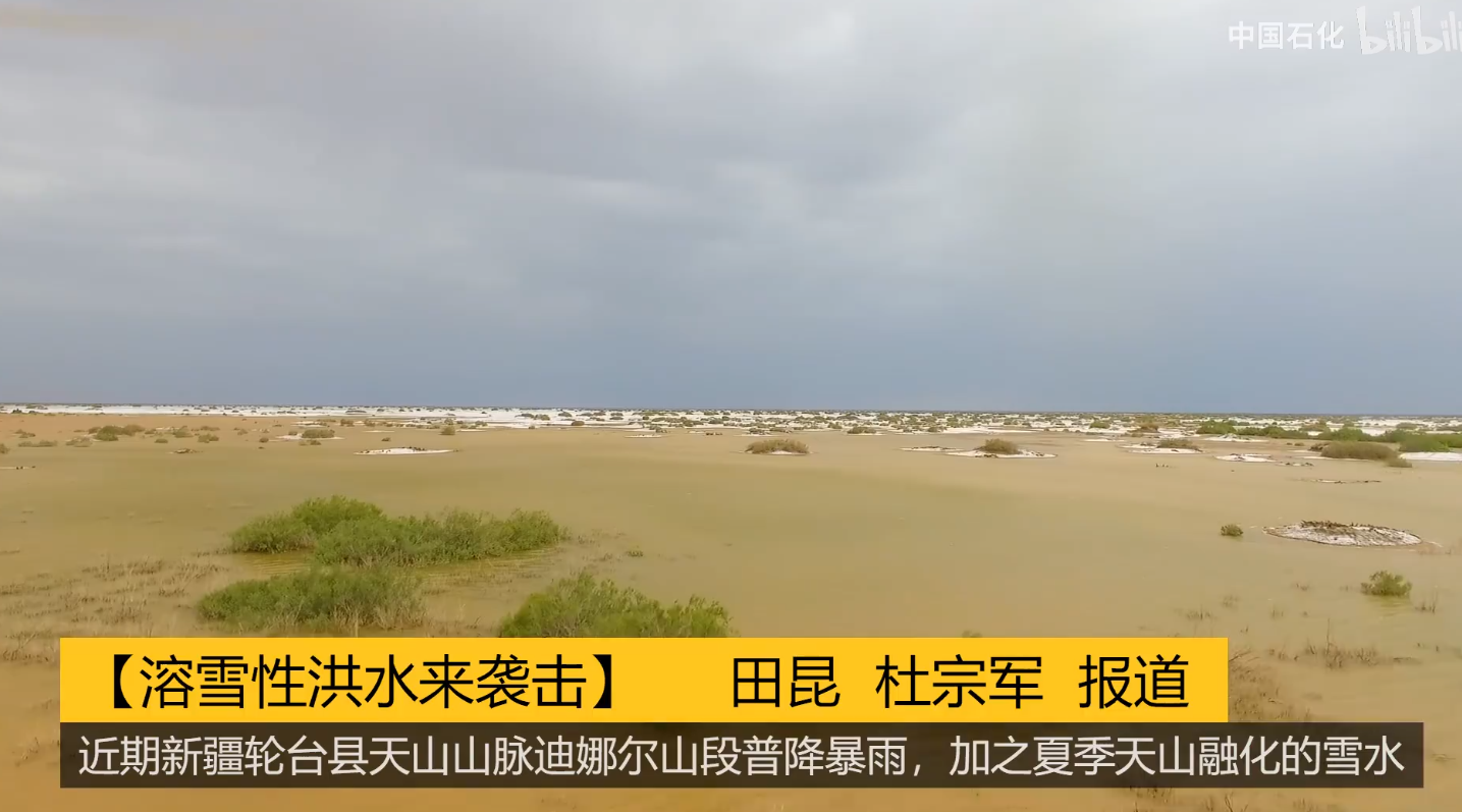 据他们所说,7月19日,新疆轮台县天山山脉迪娜尔山段普降暴雨,加之夏季天山融化的雪水,叠加形成了季节性洪水,袭击中国石化西北油田玉奇片区,将沙漠变成了水乡。