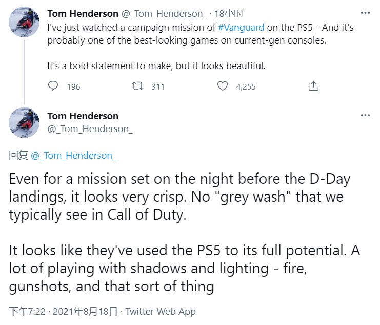 COD 最新作《使命召唤 18:先锋》可以说是备受期待的 FPS 之一,近日,据知名爆料人 Tom Henderson 在Twitter上爆料的消息,《使命召唤 18: 先锋》发挥了 PS5 的全部潜力,可以说是当前主机上画面最棒的游戏之一。
