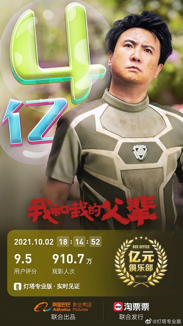 据@灯塔专业版 微博消息,截至10月2日18时14分,电影《我和我的父辈》上映第三天,总票房突破4亿。