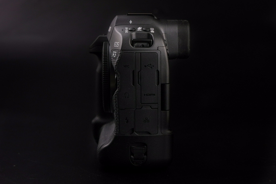 在EOS R3的机身侧面,各种接口一应俱全,方便各种附件的连接,我们在下面还会单独讲解一些接口的作用,在这里就先不一一介绍了。