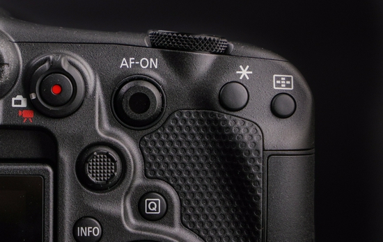 在背部操作区,EOS R3的AF-ON自动对焦驱动按钮(智能控制器)采用了和EOS-1D X III一样的全新的设计,除了可驱动镜头进行自动对焦之外,还可以通过手指滑动,选择自动对焦的点与区域,在我们进行拍摄时,已经半按快门进行追焦的情况下,还可以通过AF-ON自动对焦驱动按钮将焦点直接选择到通过取景器的眼部追焦看到的物体上。