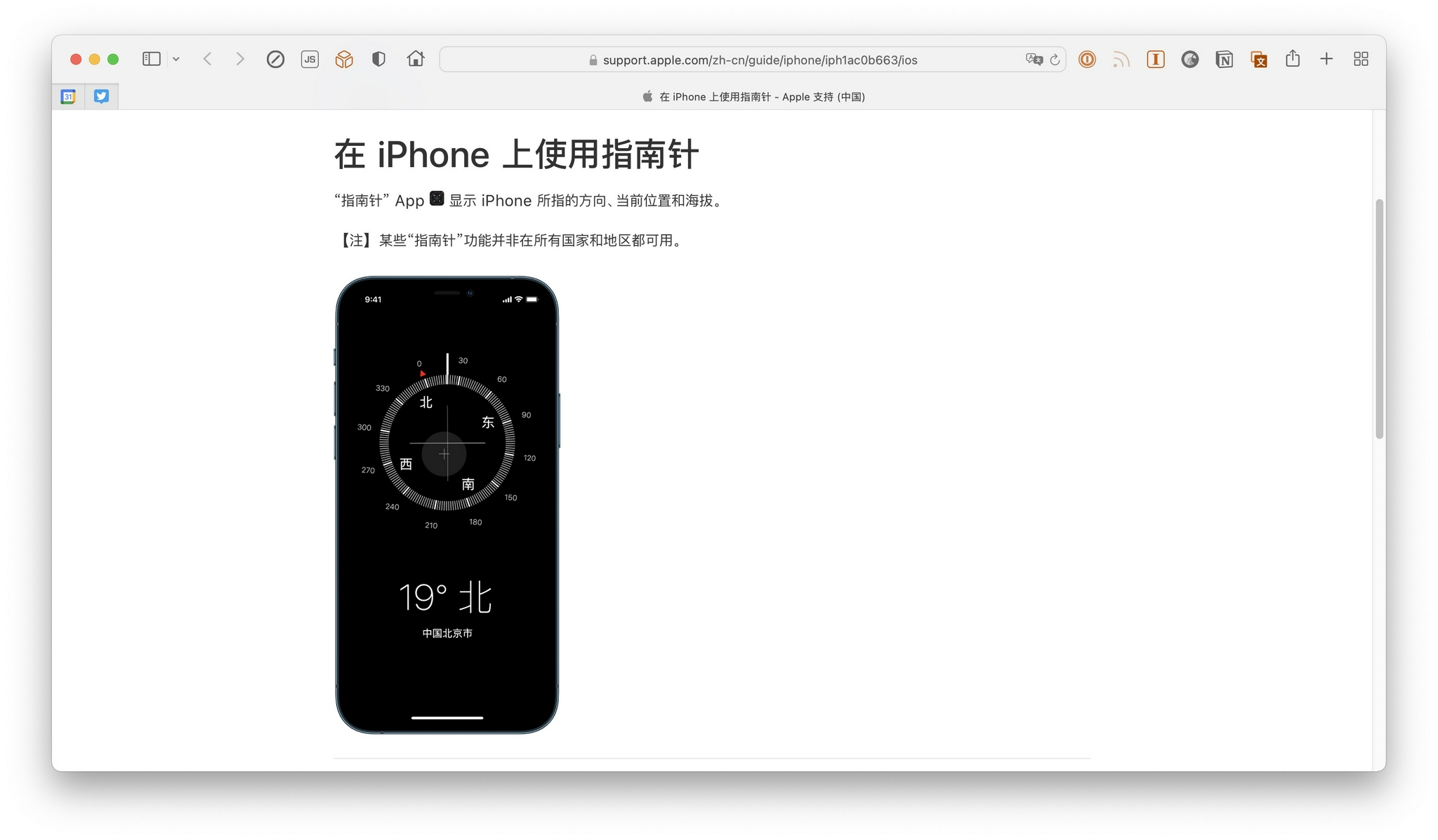 今年 10 月,有用户发现当 iPhone 升级到 iOS 15.1 后,手机内置的“指南针”应用无法查看定位坐标与海拔高度信息。11 月,这一消息得到证实,苹果在中国大陆官网的 iPhone 使用手册中,“在 iPhone 上使用指南针”的页面内加入一行小字显示“某些‘指南针’功能并非在所有国家和地区都可用”,配图也改成简体中文界面的 iPhone,图中只显示了方向和所在城市,没有显示坐标与海拔高度信息。