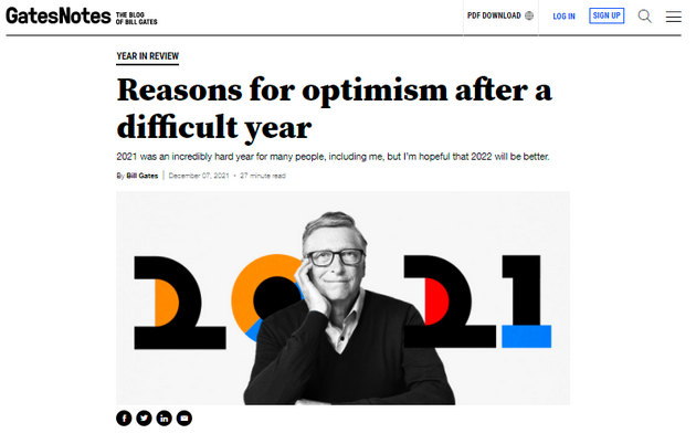 财联社(上海,编辑 卞纯)讯,在近日发布的一封年终信中,微软联合创始人、亿万富翁比尔•盖茨(Bill Gates)不仅回顾了“最不寻常和艰难的2021年”,同时也对2022年及以后充满乐观——包括一个 “更加数字化的未来”。他预测元宇宙的兴起将极大地改变未来的工作。