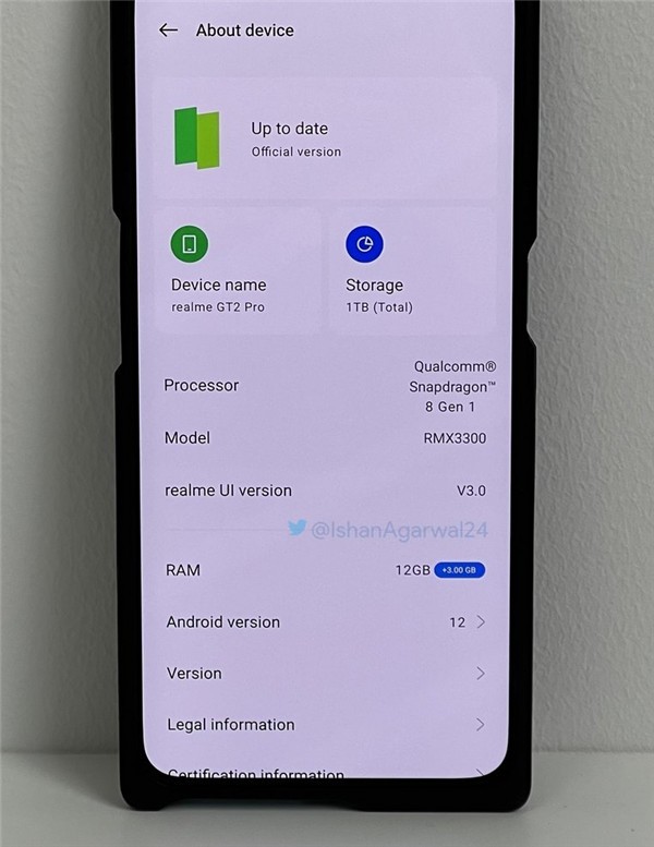 realme GT2 Pro的型号为RMX3300,存储方面非常值得注意,其配备了12G+1Tb的配置,这也是市面上首款采用1Tb,也就是1000G容量的骁龙8 Gen1旗舰。