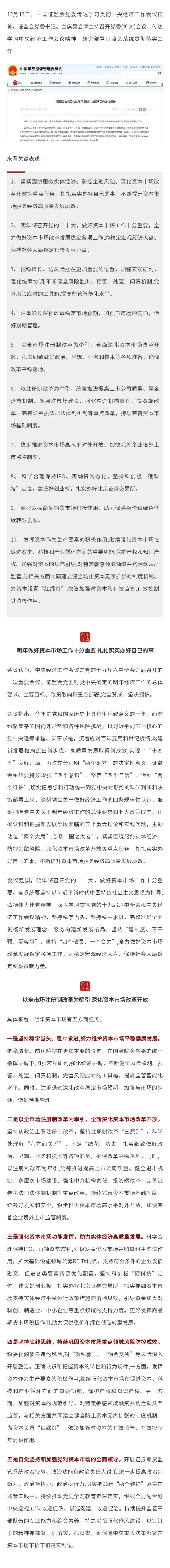 原标题:重磅!证监会部署明年五大改革任务,确保全市场注册制平稳落地,加快完善境外上市制度…来看十大要点 来源:证券时报网