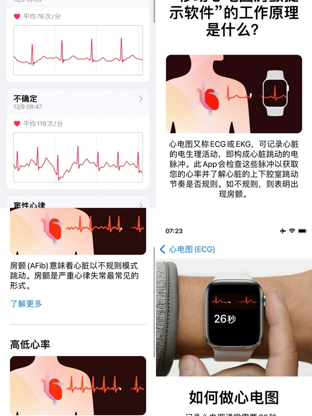 具体到苹果产品上,用户见到的是“健康”里面的移动心电图房颤提示软件和移动脉率房颤提示软件,终于获得国内相关部门批准,在苹果的手表和手机上出现。