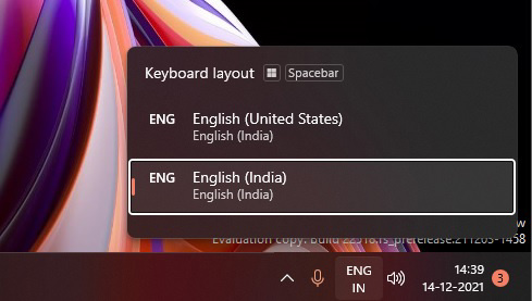 Windows 11 配备了一个新的输入法切换器(弹出菜单,让你在设备上安装的语言包之间切换)。