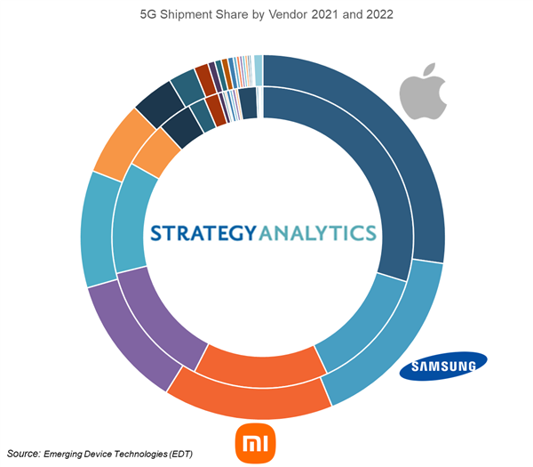 厂商方面,SA称苹果今明两年都将是世界上第一大5G手机出货商,小米今年会拿到第二,只是明年将被三星反超。