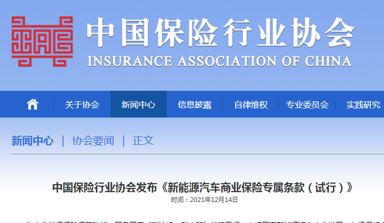 近日,中国保险行业协会在其网站公布了《中国保险行业协会新能源汽车商业保险专属条款(试行)》。