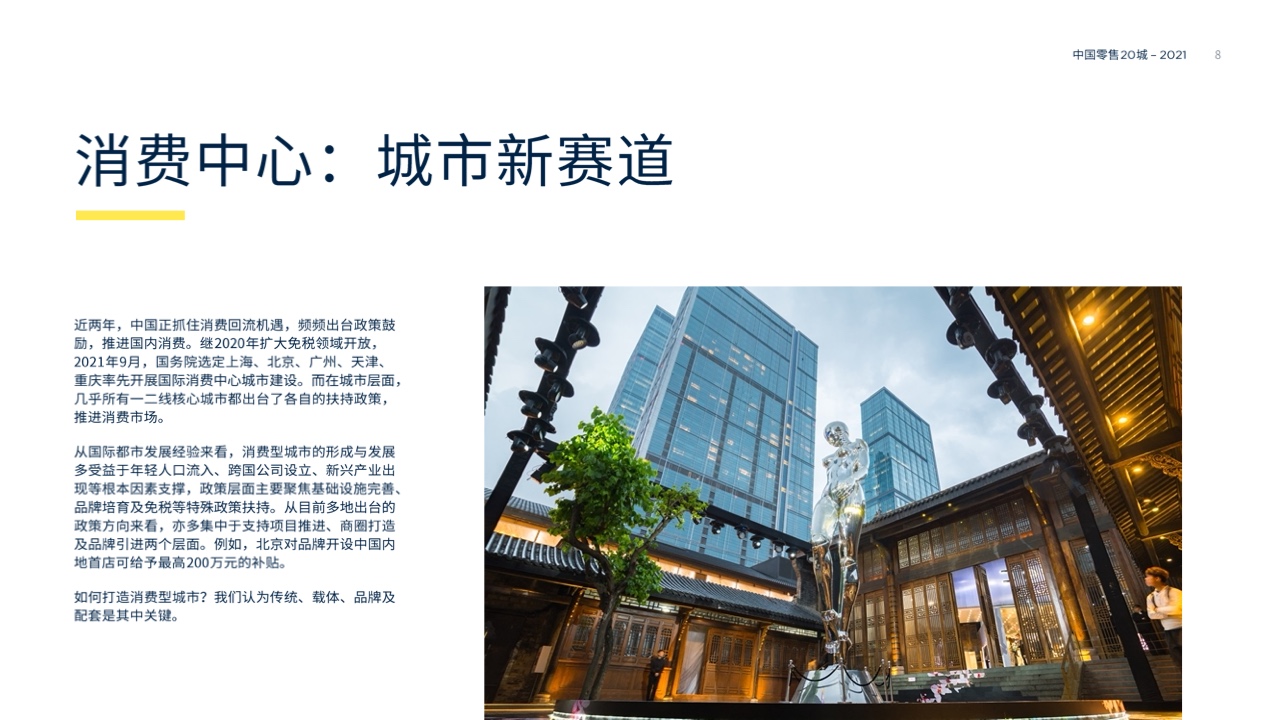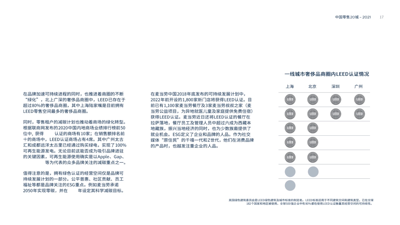 今年双十一虽然各家电商平台并未如往年第一时间发布战绩,但种种迹象表明中国消费者依旧保持“战斗力”十足。据第一太平戴维斯统计的20座一二线城市中,前三季度社会消费品零售总额平均增速22.3%。如何在新一年零售市场中取得先机?第一太平戴维斯联合美国绿色建筑委员会发布2021年度《中国零售20城》报告,从零售城市排名到零售商偏好,为你深入解析中国零售市场。
