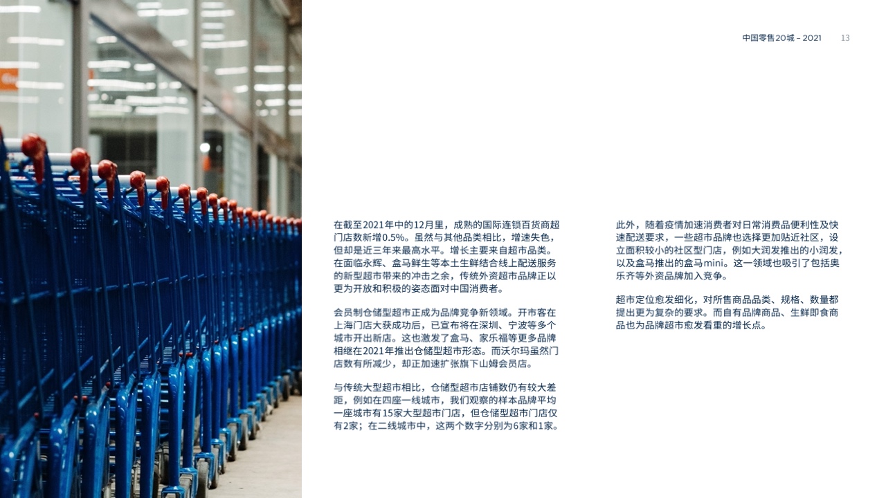 成熟的国际连锁百货商超门店数新增0.5%,达到近三年来最高水平。增长主要来自超市品类。会员制仓储型超市正成为品牌竞争新领域。