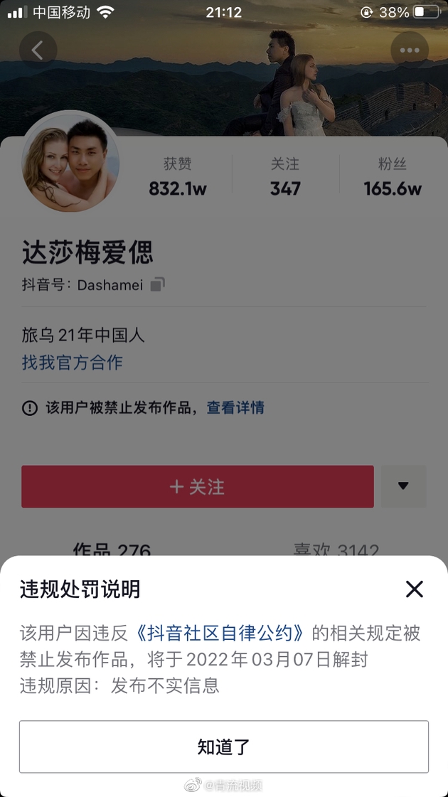2月27日晚,乌克兰华人网红@梅爱偲乌克兰 发布一则视频,将2020年俄罗斯阅兵飞行彩排、2020年黎巴嫩大爆炸视频掺杂其中,引发误导。28日晚,该博主因发布不实消息,被平台封禁一周。
