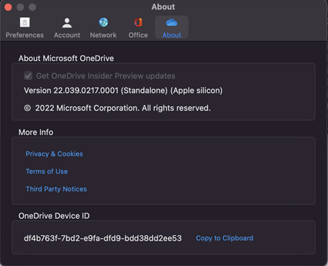 微软Mac版OneDrive 22.022已原生支持苹果M1系列芯片